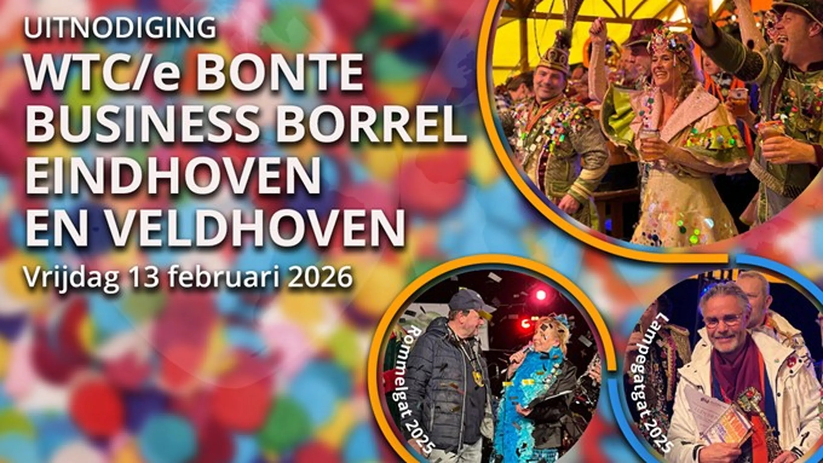 Welke zakenman of - vrouw uit Veldhoven met een kleurrijke ondernemersvisie en een warm hart voor de Carnaval wordt verkozen tot Bonte Business Bons? Geniet van een samenkomst in carnavaleske sferen!