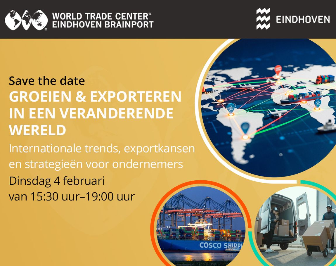 Namens WTC/e Brainport en Gemeente Eindhoven nodigen we je van harte uit om deze datum alvast te reserveren. Een waardevolle bijeenkomst voor MKB-ondernemers die willen groeien, innoveren en internationaal uitbreiden.
