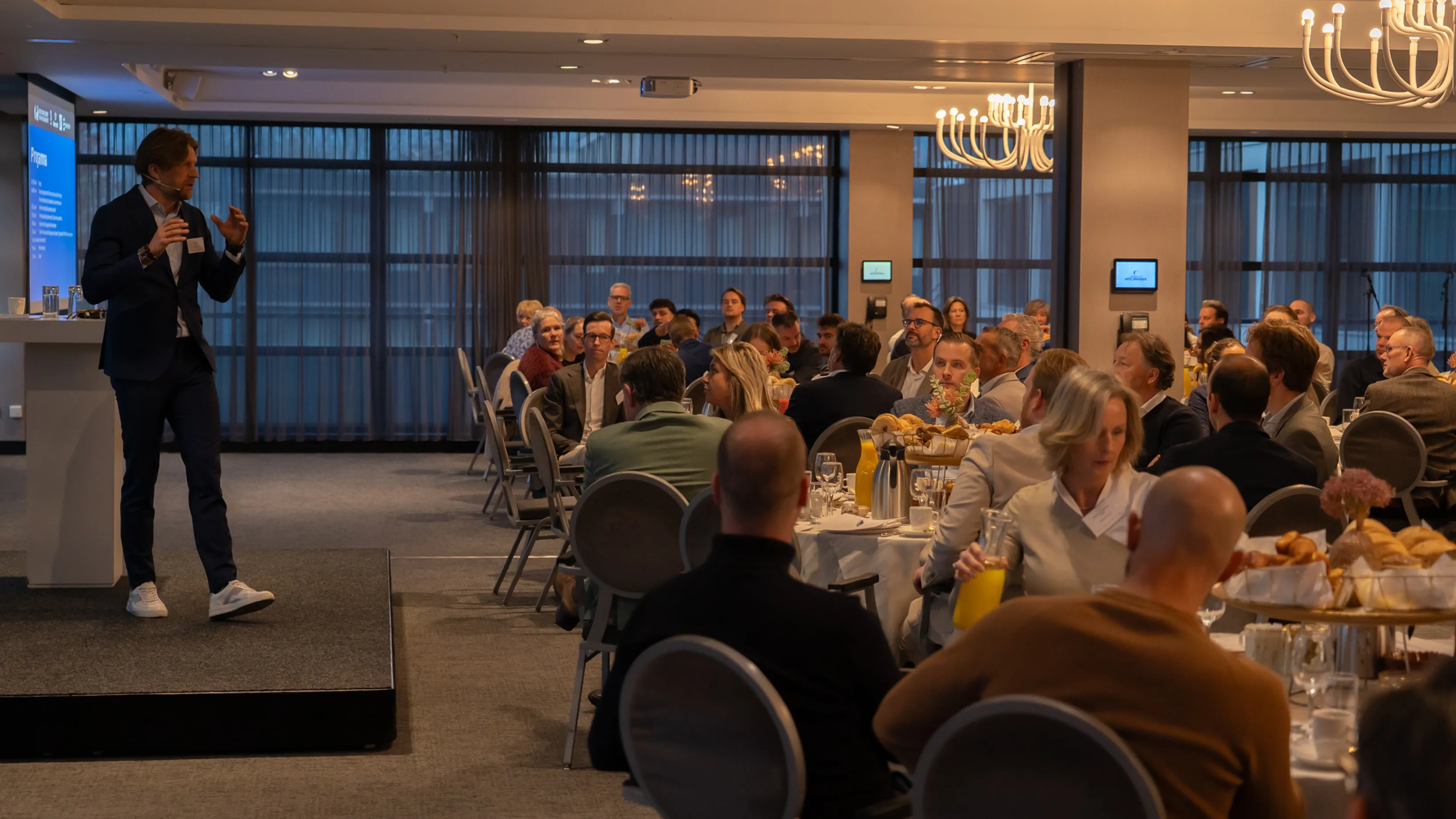 Een oproep vanuit de ondernemers in de zaal gericht aan de politiek. Zij vonden bij Stijn Steenbakkers, wethouder van Brainport, economie, onderwijs, KnoopXL en Eindhoven-Noordwest, deze ochtend een luisterend oor. Binnen de gemeente Eindhoven is men ervan overtuigd dat het allemaal veel gemakkelijker moet en kan waar het gaat om wet- en regelgeving. Vanuit het adagium ‘snappen of schrappen’ riep hij dan ook ondernemers op om wet- en regelgeving die niet uit te leggen is of niet helpt om het ondernemersklimaat nog gezonder te maken, bij de gemeente te melden. Om samen te kijken wat er gedaan moet worden om plannen wel mogelijk te maken, om groei te bewerkstelligen en ervoor te zorgen dat de Brainport Regio de ambities kan blijven waarmaken. Want dat de Brainport Regio een van de aanjagers van de Nederlandse economie is, behoeft geen nadere uitleg. Maar de regio heeft ook alles in zich om een essentiële bijdrage te leveren aan een sterk Europa. En dat biedt kansen, maar vraagt ook om het nemen en dragen van verantwoordelijkheid.